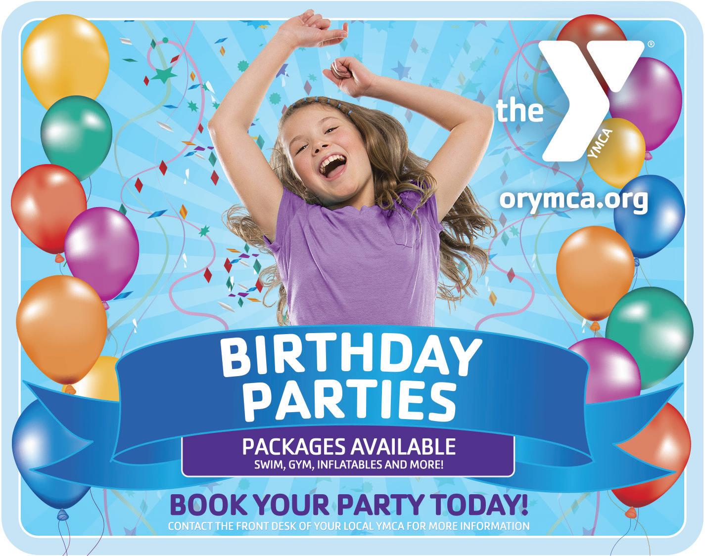 Book your birthday celebration with your local Ozarks Regional YMCA center. The Y’s trained staff will ensure you have a great time in a safe and exciting environment. Party packages and details vary by location. Visit the Y’s website and select your preferred center to see what they have to offer. Pat Jones Y in Springfield offers party options with a bounce house or in the pool, NERF play, and a combination of activities. Discounts for Y member families. See ad on page 20.