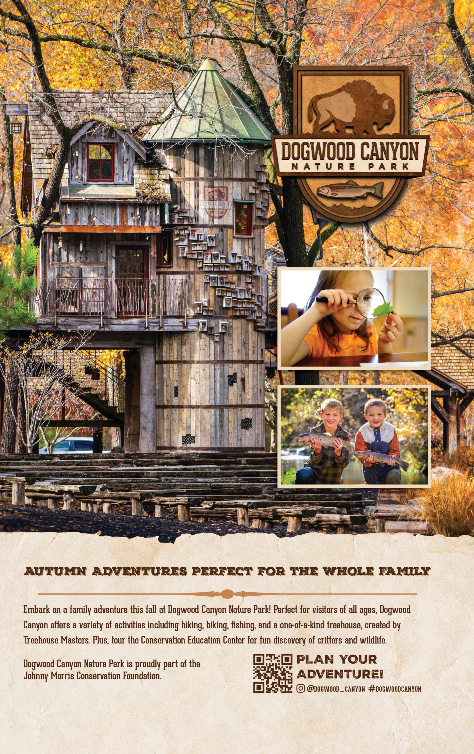 Homeschool Days at Wonders of Wildlife, Dogwood Canyon, and Top of the Rock. Ages 4-18. Wonders of Wildlife, 500 W. Sunshine St., Springfield; Dogwood Canyon, 2038 W. State Hwy 86, Lampe; and Top of the Rock, 150 Top of the Rock Rd., Ridgedale. wondersofwildlife.org, dogwoodcanyon.org, or bigcedar.com/top-of-the-rock/ See the ads on pages 2 and 5.