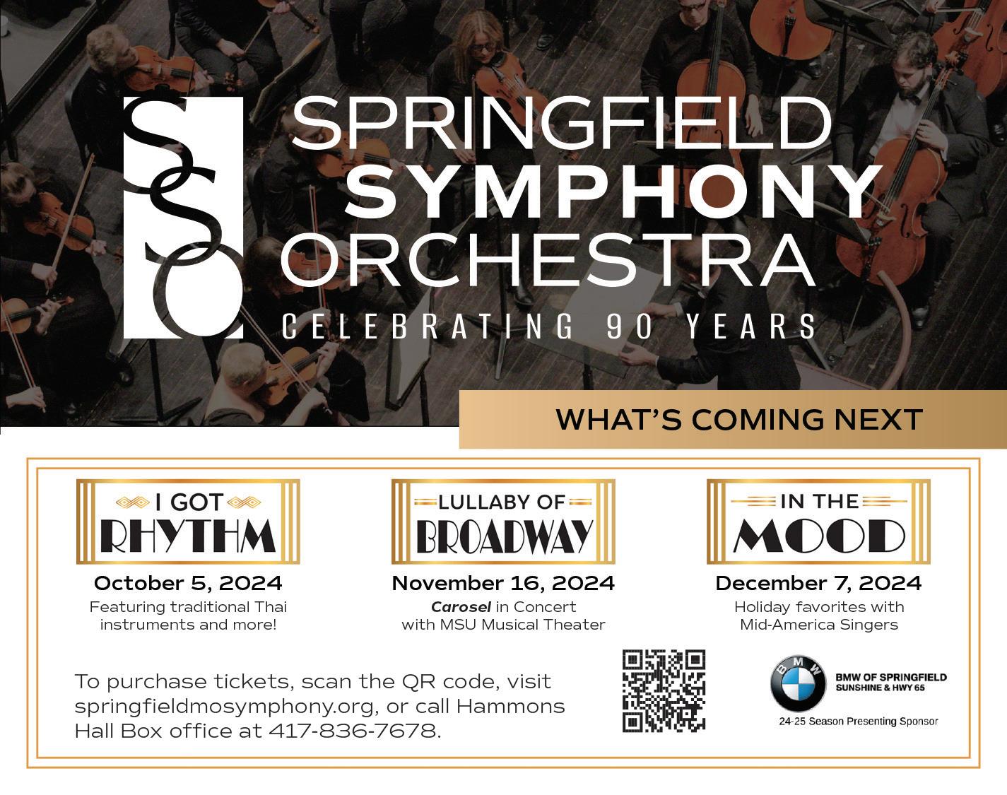 Spooky Symphony with Springfield Symphony, 7 p.m. Free concert of familiar music. Reserve tickets with the Symphony office, springfieldmosymphony.org or 417-864-6683. Concert at Hammons Hall, 525 S. Hammons Pkwy., Springfield.