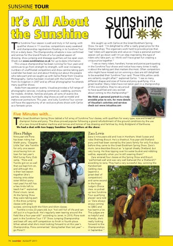 We caught up with Carlos at the great Bookham spring show, he said: “I’m delighted to offer a really great prize for the Championships. the organisers work hard to provide prizes that ‘real’ riders will appreciate and value so I hope a personal portrait session will go down well! It’s an idea inspired by the type of riders who take part, so I think we’ll have great fun creating a unique prize together.” “I see so many riders, handlers, horses and ponies participating in the sunshine tour shows and notice how many times it really is about the taking part that matters the most. Often competitors who might have missed out on winning a class are still delighted to be awarded their sunshine tour card. those little yellow cards are certainly sought after!” explained Carlos. “I see so many different shapes and sizes of horse and pony qualifying, it’s a great leveller. Many riders have not taken part in a championship of this size before, they’re very proud Carlos Perez to have qualified and very excited of Visualise about coming to the championship!” Photography We think a personal portrait is a truly enviable prize to win, for more details of Visualise’s activities and services check out www.ivisualise.com