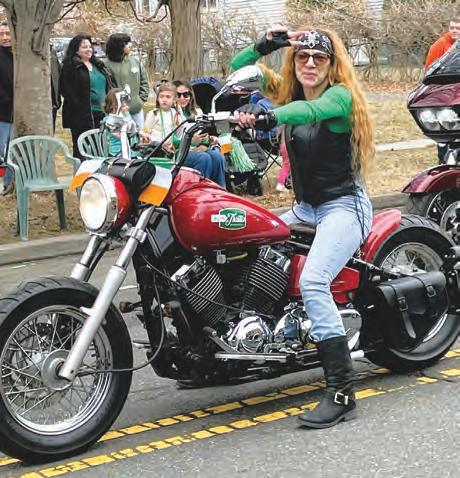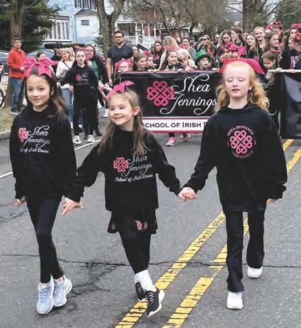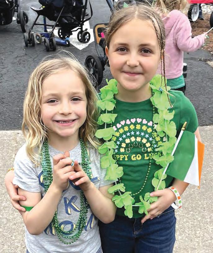 Above left, Members of Shea Jennings School of Irish Dance hold hands as the walk in Cranford’s St. Patrick’s Day Parade. Above center, the Cranford Newcomers Club holds up its banner as the members enjoy a walk through the streets of Downtown Cranford. Above right, motorcycles roar through township streets as they take part in Cranford’s inaugural St. Patrick’s Day Parade. At left, William, 6, and Madelyn, 3, are all decked out in the appropriate color of green as they enjoy the parade from alongside one of the township streets. At right, Teddy, 5, and Esme, 8, look very excited as the St. Patrick’s Day Parade passes by where they are standing. Below left, 2024 Memorial Day Grand Marshal Jay Flanagan rides in Cranford’s St. Patrick’s Day Parade looking resplendent in the back of a truck. Below left, Dale Buchheister and Zilpha, 5, sit back and relax while enjoying a perfect day for Cranford’s first St. Patrick’s Day Parade.
