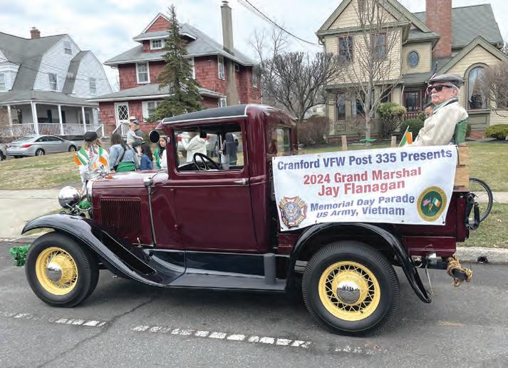The parade lineup included: VFW Honor Guard, Union County Pipes and Drums, Shea Jennings Dance School, Ancient Order of Hibernians, Knights of Columbus, St. Michael’s Youth Group, Daughters of Ireland, Union County Celtic Festival, Cranford PAL Cheerleading, CHS Band, Cranford Wrestling Cougars, Cranford Jaycees, Girls Scouts, Boy Scouts, Diamondettes Baton Group, Cranford Newcomer’s Club, Cranford Women’s Club, Cranford Historical Society, Cranford Library, Friends of Cranford Library, Cranford Elks Lodge No. 2006, Cranford Revolution 250 Committee, VFW Post No. 335, 2024 Memorial Day Grand Marshal Jay Flanagan, Cranford Fire Department, Cranford First Aid Squad and Cranford Police Department.
