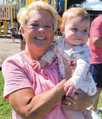 Above left, Patti Moreno, of Cranford, holds her daughter, Emma, 7 months, at the recent community event. Moreno said she enjoyed the interaction with people, adding ‘My husband is a retired firefighter from Elizabeth.’ Above, second from left, Joe Kropa stands with Fred, 2, and Molly, 6, at the annual Ice Pops with Cops/Cool Down with the Fire Department event at Hillside Avenue School. Above, third from left, Cranford Fire Department Battalion Chief Matt Lubin smiles at the recent community