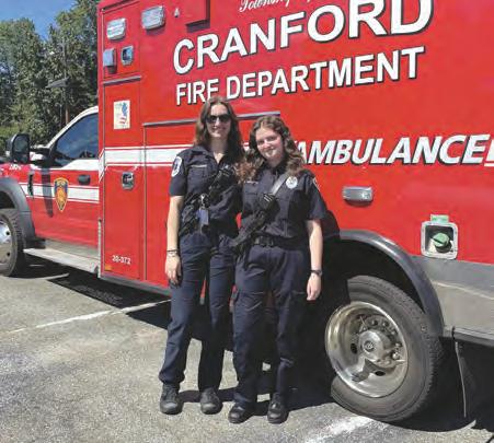 event. He said ‘It’s always a pleasure to partner with the police department. I look forward to the new school year and meeting with the youngest residents and teaching them about fire safety.’ Above right, Kayla Rajcevic and Rachel Manette of the Cranford Fire Department are a full-time emergency medical technician and a per-diem EMT, respectively. Rajcevic said, ‘It’s fun to watch the kids have a good time,’ and Manette added, ‘It’s great for kids to have an opportunity to learn more about what we do.’