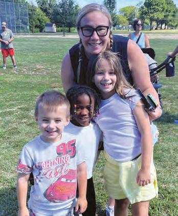 left, Willow, 5, and Tallulah, 1, enjoy the annual Ice Pops with Cops/Cool Down with the Fire Department event at Hillside Avenue School. Above center, Danny, 4, and Jack, 4, wear their own police caps as they eat free ice pops and enjoy the community event. Above right, Kim Stanfel stands with Joey, 4, Aubrey, 7, and Madison, 7, who are all smiles at the event at Hillside Avenue School.