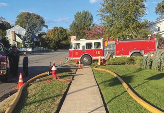 A Bloomfield fire truck helps transfer water from the East Orange water system into Glen Ridge’s water system. Glen Ridge was one of the many towns adversely affected by the water main break in Nutley.