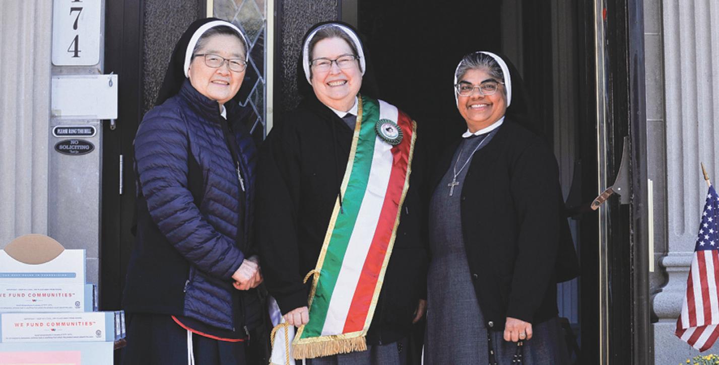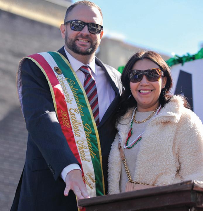 Above is Dolores Del Deo Kirk, 2022 Lifetime Achievement Award winner, with Chairperson Rosemary Costa and co-Chairperson Bill Freda. Below, parade committee members, from left, are Cavaliere Susan R. LaMorte, Diane Stanzione, Edie Peters Liguori, Chairperson Rosemary Costa, the Rev. Thomas Nicastro, co-Chairperson Bill Freda, Ben Costa, Barbara Freda, Melissa Matturro, Vito Matturro, Joe Gencarelli and Cavaliere Pasquale Meola.