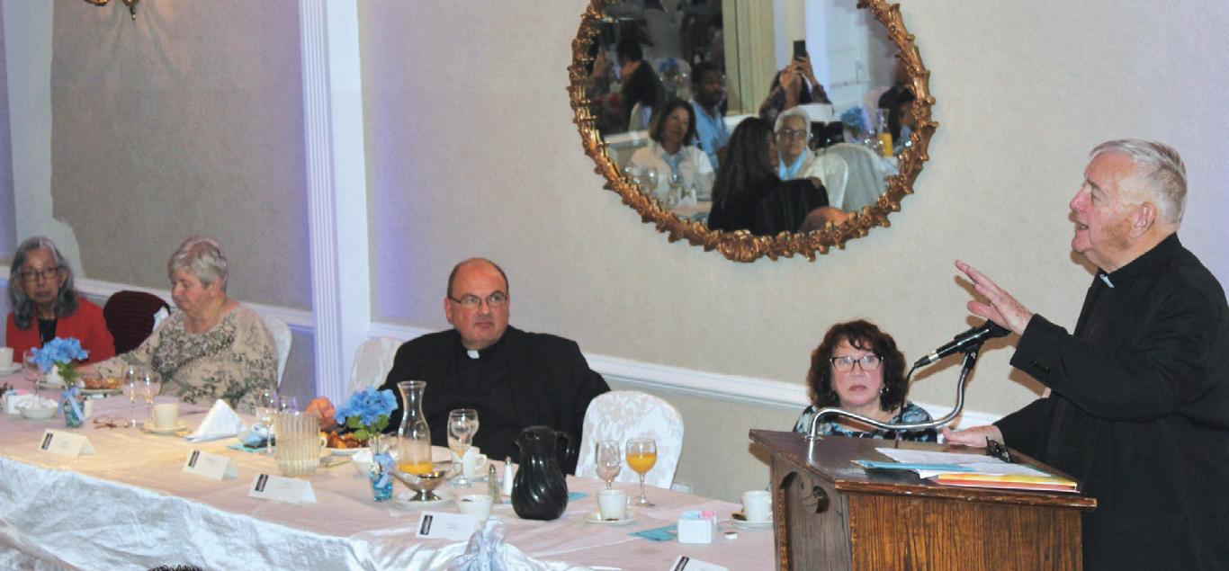 ROSARIAN COMMUNION BREAKFAST — As is customary during the month of October, the St. Peter’s Confraternity of the Holy Rosary in Belleville once more held its annual Communion breakfast. Close to 100 parishioners and friends attended the event at the Chandelier venue and listened to a keynote speech from Monsignor William J. Reilly, a longtime priest who has held several key roles in the Archdiocese of Newark since his ordination in 1965.