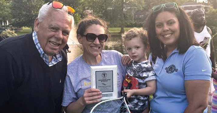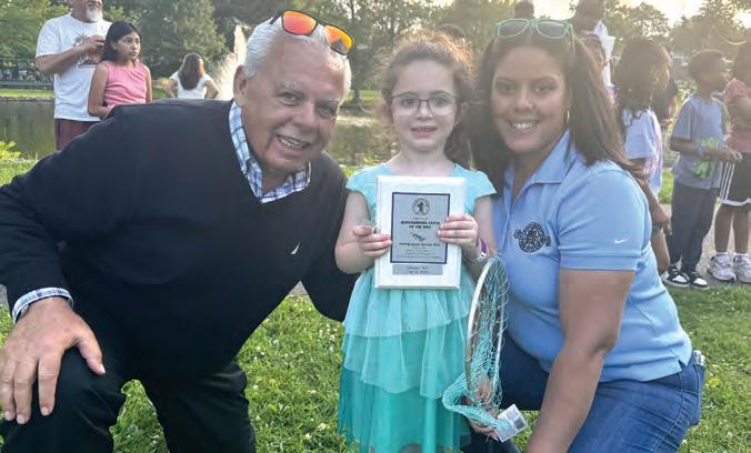 GO FISH: Olivia Vicente (center) from Nutley caught the most fish in the girls’ ages 1-5 category at the county Fishing Derby in Monte Irvin Orange Park in Orange on June 10. She caught two fish. Presenting the award are Director Dan Salvante and Coordinator Jacqueline Matthews.