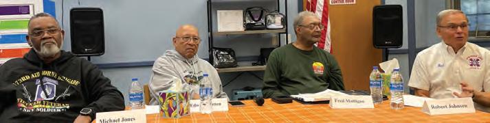 comprising the Vietnam Veteran’s Panel, which was hosted at the Union Public Library’s Vauxhall Branch on Saturday, Nov. 8, are, from left, Vietnam veterans Michael Jones, Edward Batten, Fred Mulligan and Robert Johnson. Upper left, Gabriel Ramos, Vauxhall Library branch manager, introduced the program and the library’s new BrainFuse VetNow program, designed to help veterans access Veterans Affairs services and learn more about their benefits. Lower left, Mayor James Bowser speaks at the Vietnam Veterans Panel. ‘It’s an honor,’ he said. ‘Together, we can share our gratitude as stories are passed down from generations.’ Below, Union County Commissioner Sergio Granados thanked the veterans for their service.