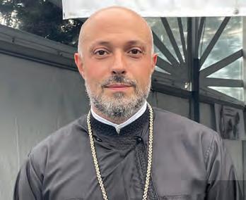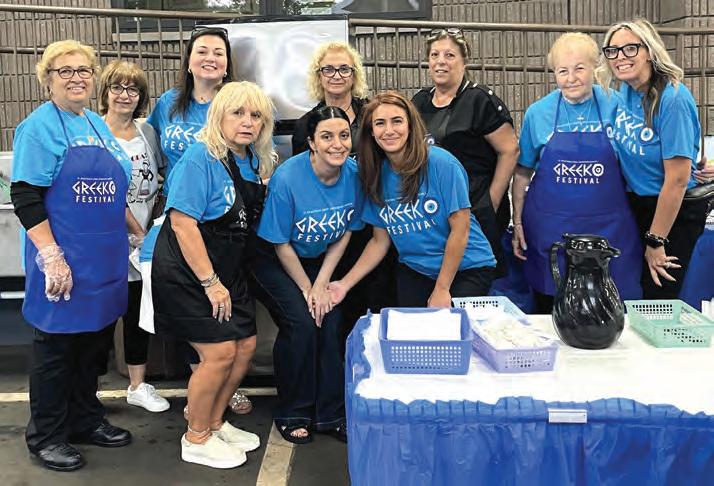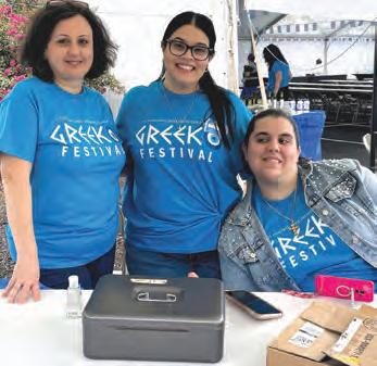 Above left, from left, Nina Paragioudakis, Sophia Paragioudakis and Maria Michalarea enjoy the 48th annual Greek festival at St. Demetrios Greek Orthodox Church in Union. Above right, Papa Dopoulos, main chef, and Peter Barnat, chef and chairperson of St. Demetrios, hold a tray of meatballs they had prepared, straight from the oven. Below left, the presiding priest of St. Demetrios Greek Orthodox Church in Union, the Rev. Archimandrite Evgenios Tsaramanidis, was in attendance to make sure the traditional Greek festival ran without a hitch, which it did. Below right, Stephanie Nikitiadis and Mike Santos mix bar drinks.