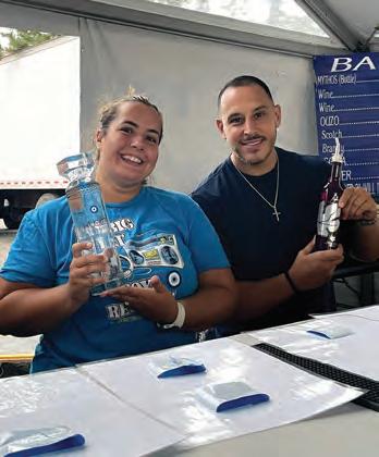 Above left, Claudia Oliveira, of Freehold, shows her Honda S2000. It was a Valentine’s Day present from her husband. She said, ‘It’s manual. Not a lot of women drive manual. Summertime, I drive with the top down.’ Last month, she won her first trophy for ‘Top 10 Female Rides.’ Above center, Jean Richards, of Union, recently quit her day job as an accountant and started creating arts and crafts. ‘This is more relaxed,’ she said. Above right, Carlos Lopez, chief operations officer, and Vielka Rodriguez, both of Tropical Juice Bar, promote the newest juice bar coming to Union in mid-September.