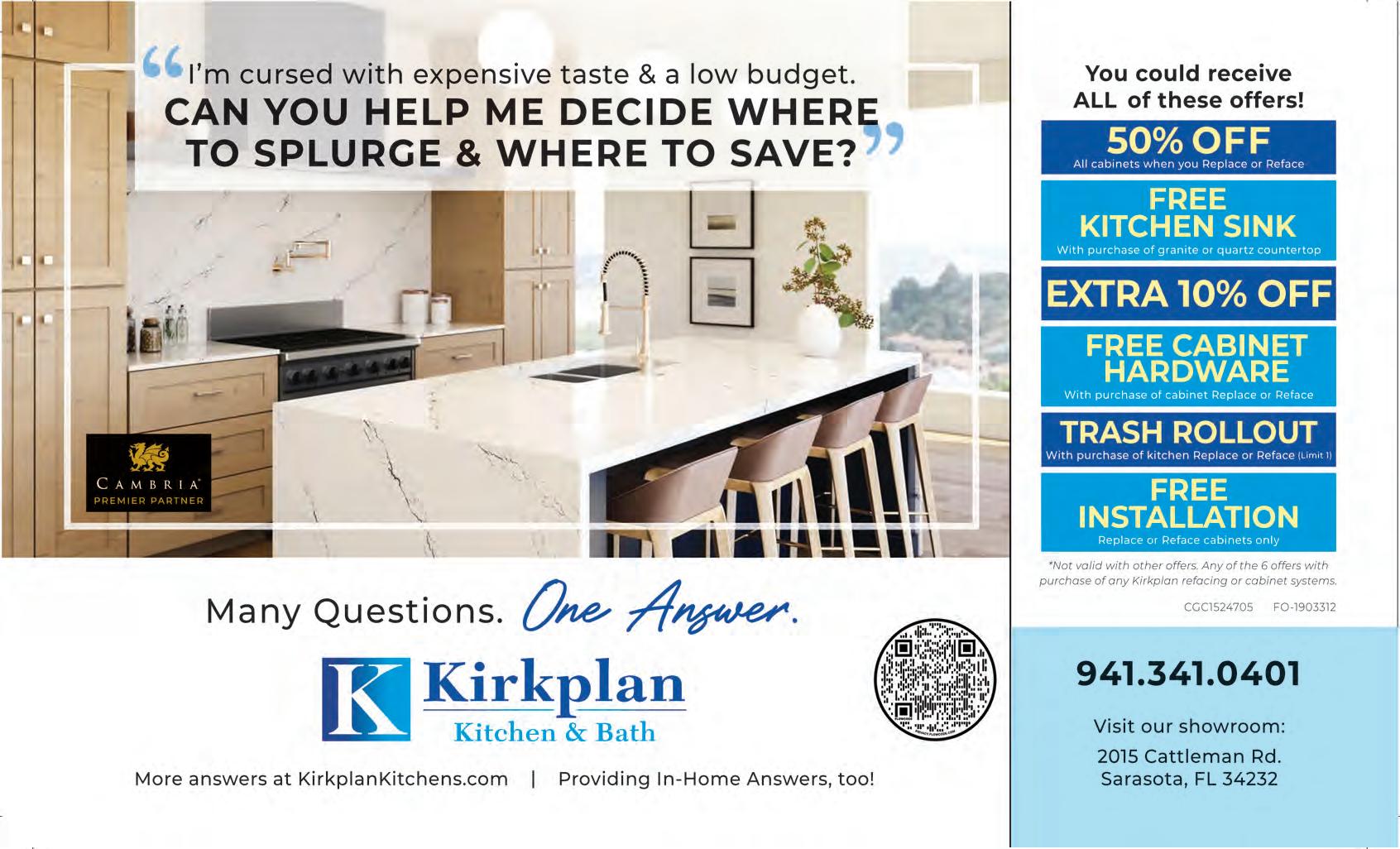 Solid hardwood, ventilated shelving. Add to existing closets or eliminate old wire racks & design custom closets. We Beat Any Comparable Estimate Even the National Chains! Locally Owned & Operated FREE In-Home Consultation! 941-413-0813 cabinetsofsarasota.com Must present offer at time of estimate. Restrictions may apply. Cannot be combined with other offers. Expires 6/10/24. 10% OFF Actual Retail (Closets or Cabinets) Cabinets Available in 2 Weeks!
