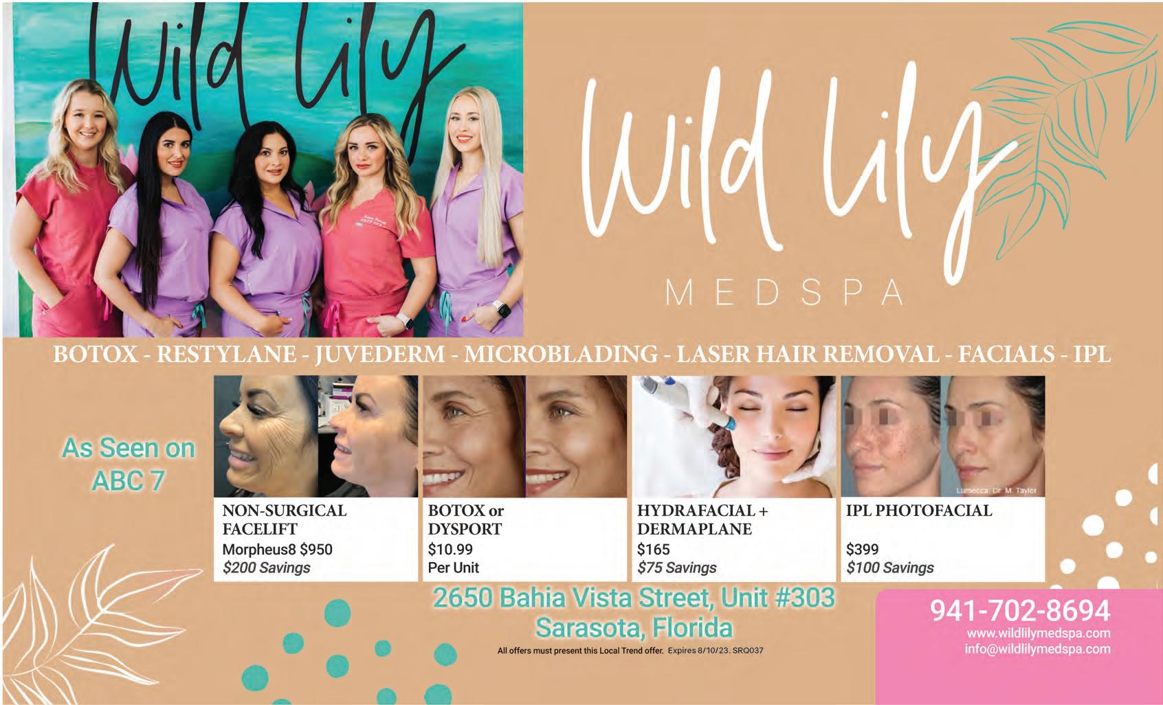 A HEALTHY HOME IS A CLEAN HOME. We use professional-grade cleaning products to help thoroughly sanitize your home. Let us be a part of your germ fighting team! Visit us at MollyMaid.com to learn more. ©2019 Molly Maid, LLC. Each franchise is independently owned and operated. Molly Maid of Sarasota, Manatee, Charlotte Counties Save On Your Cleaning Service Restrictions may apply. Not valid with other coupons or discounts. Must present coupon. Expires 8-10-23 New Customers Only. $50 OFF One Time Cleaning (3 hour minimum) PRSRT STD U.S. POSTAGE PAID SARASOTA, FL PERMIT NO 1406 To Advertise Call or Text 941-356-9949 or email at info@yourlocaltrend.com o JULY 2023 ISSUE 037 SA1 MOLLY MAID® OF SARASOTA, MANATEE, CHARLOTTE COUNTIES 941-877-0100