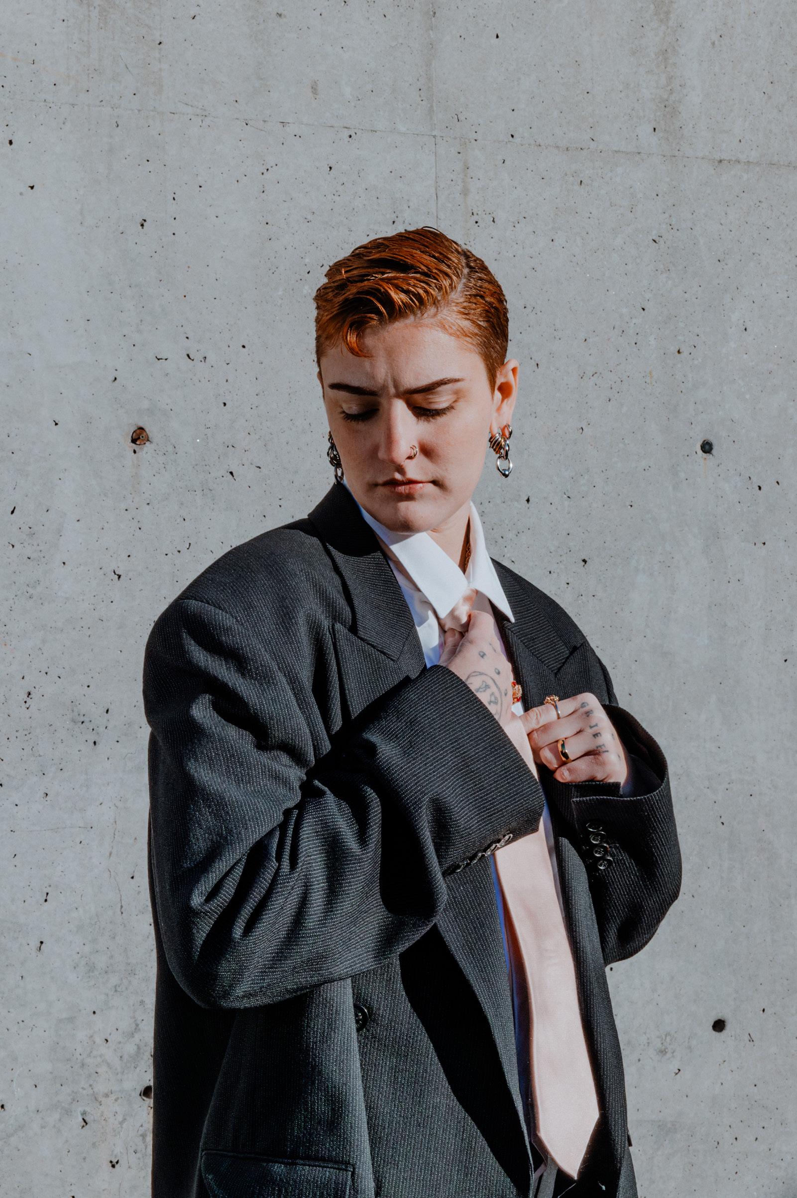 While their music can be deeply, heartbreakingly emotional (like the viral 2022 track “Nothing’s New”), it often contains sarcastic, witty lines and playful sounds that parallel the musical theatre they grew up immersed in. They recently released a string of singles: “Terminal Lovesick” on Valentine’s Day, a track specific to their love life as a butch lesbian; “You're The Piece of Shit,” channeling rage about men in the music industry; “Jane Freaks Me Out,” a fun, lighthearted lesbian banger.
