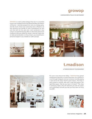GROWOP is a well curated vintage shop set in a converted home in the neighborhood of the Roosevelt Row arts district of Phoenix. I recently bumped into Josh at a holiday party, and like much of the local community here in Phoenix, he was personal and friendly to have remembered my visit and chat with him the year prior. Josh mentioned a very unique concept that Growop offers in which they allow local creatives to borrow clothes for shoots. Josh has a keen eye on style personalization, so if you drop in, you would have a personal shopper if you needed an outfit concept.
