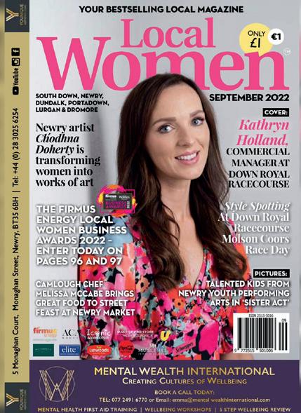 YOUR BESTSELLING LOCAL MAGAZINE NORTH WEST 028 7126 2626 / ROI 0044 287126 2626 SEPTEMBER 2022 Naveen Sharma from GLS Clothing and Threads Menswear, COVER: Meet Creggan Country Park’s Bat Womaneco warrior Karen Healy “I’m doing it for my girls!” BACK TO SCHOOL FOR BRANDYWELL’S BRONAGH PARKE FALL INTO FASHION AT FOYLESIDE THE FIRMUS ENERGY LOCAL WOMEN BUSINESS AWARDS 2022 –ENTER TODAY ON PAGES 88 AND 89 0.LWM_COVERS_SEP2022.indd 11a Chichester Street, Belfast, BT1 4JA | Tel: +44 (0) 28 9693 0183 SEPTEMBER 2022BELFAST LARNE, ANTRIM & NEWTOWNARDS YOUR BESTSELLING LOCAL MAGAZINE bridalelegancelarne bridaleleganceboutique 18 Main Street, Larne BT40 1SS Tel: 028 2832 9402 www.bridalelegance-boutique.co.uk Fiona Higgins FROM FIONA HIGGINS BEAUTY, BALLYCLARE AND THE DUNADRY HOTEL COVER GIRL: “Reaching out isn’t a sign of weakness” South Belfast’s Cara McErlain on her journey to healing CARRICK STRENGTH COACH MAYA CURRY IS EXERCISING HER FUNDRAISING MUSCLE THE FIRMUS ENERGY LOCAL WOMEN BUSINESS Style Spotting At Down Royal 9 772050 860002 09 ISSN 2050-8603 YOUR BESTSELLING LOCAL MAGAZINE UNIT 1, 24A WINDYHILL ROAD, LIMAVADY, BT49 0JW. TEL 07936 78211 THE HILL RESTAURANT AND TAKEAWAY: 3 COURSE MEAL FOR £15 4-7PM DAILY www.chapssubzero.com AINE FERGUSON-SMITH AND COLIN MCCLELLAND’S MAGICAL OUTDOOR WEDDING AT THE BROWN TROUT GOLF & COUNTRY INN, AGHADOWEY PICTURES: SEPTEMBER 2022 Angela Cosgrave, OWNER OF ROSNASHANE HOUSE, BALLYMONEY NORTH COAST & BALLYMENA COVER GIRL: Bushmills eco farmer Susan O’Neill is working in harmony with nature ACTOR BRONAGH WAUGH IS BACK ON Portrush Music Society take to the stage with family favourite Shrek THE FIRMUS ENERGY LOCAL WOMEN BUSINESS pictured with her son Killian 28/08/2022 19:34 ADL Tile & Stone Ltd ADL Tile & Stone Ltd Unit Station Road Industrial Estate, oughgall Road, Northern Ireland, Armagh, BT61 7NP T: 028 3752 5839 E: info@adlgroup.co.uk www.adlgroup.co.uk ONLY £1 9 772050 859006 09 ISSN 2050-859X ORDER OIL, COAL & GAS ONLINE AT WWW. MCLEANOILFUELS .COM OR CALL 028 7963 2281 THE FIRMUS ENERGY LOCAL WOMEN BUSINESS AWARDS 2022 MID ULSTER, ARMAGH & FERMANAGH SEPTEMBER 2022 COVER GIRL RACHEL GRAHAM Magherafelt’s “AM I DRINKING TOO MUCH?” from Cookstown, Ardboe, Pomeroy, Moneymore, Moy, Maghera, Castlecaulfield, Ballinderry and Ballyronan. owner of Serene Beauty, Dromore, Co Tyrone. YOUR BESTSELLING LOCAL MAGAZINE – enter today on pages 134 and 135 CARA MCERLAIN on her journey to healing “WOMEN CAN HAVE IT ALL,” says Cookstown’s Lisa McDermott from BeautiEdit Cosmetics MEET THE AMAZING BELLE OF MID ULSTER 2022 FINALISTS New columnist Geraldine Leyden from Maghera opens up about addiction
