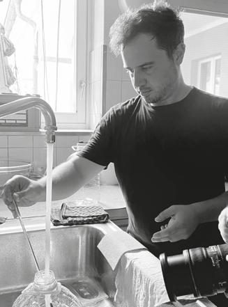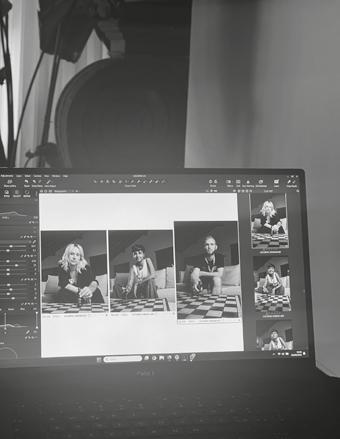 Crammed in a hostel-style room at Locarno’s BaseCamp is Davide’s darkroom, which the artist uses to develop the analog photographs he shoots on film. Every guest requires a distinct visual approach, so Davide often has to switch between different types of cameras and media formats. Doing a photo shoot and then having to develop the material just moments afterwards is a particularly stressful affair: “Waiting for the image to appear during the chemical development always makes me nervous.”