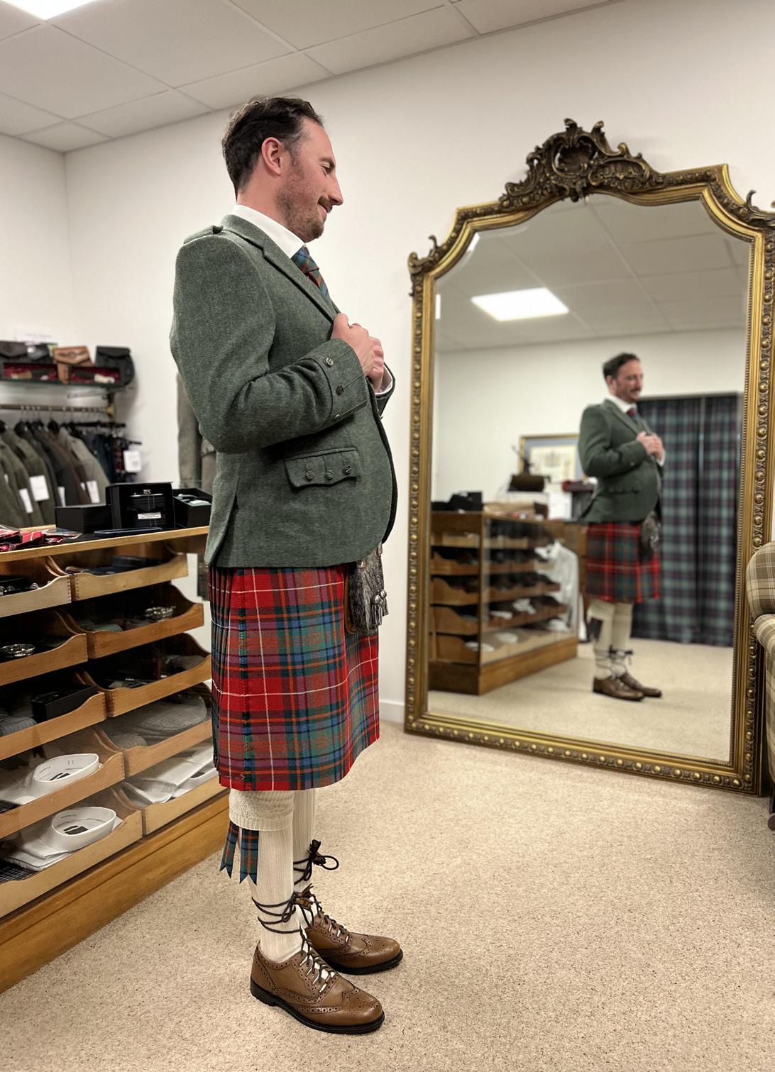 We offer a made-to-measure kilt-making service to ensure you find the style that’s right for you. Handmade by our expert kiltmakers, perfect for formal Scottish events, the epitome of traditional Scottish Highland dress.and they are fully tailored and made in Scotland.