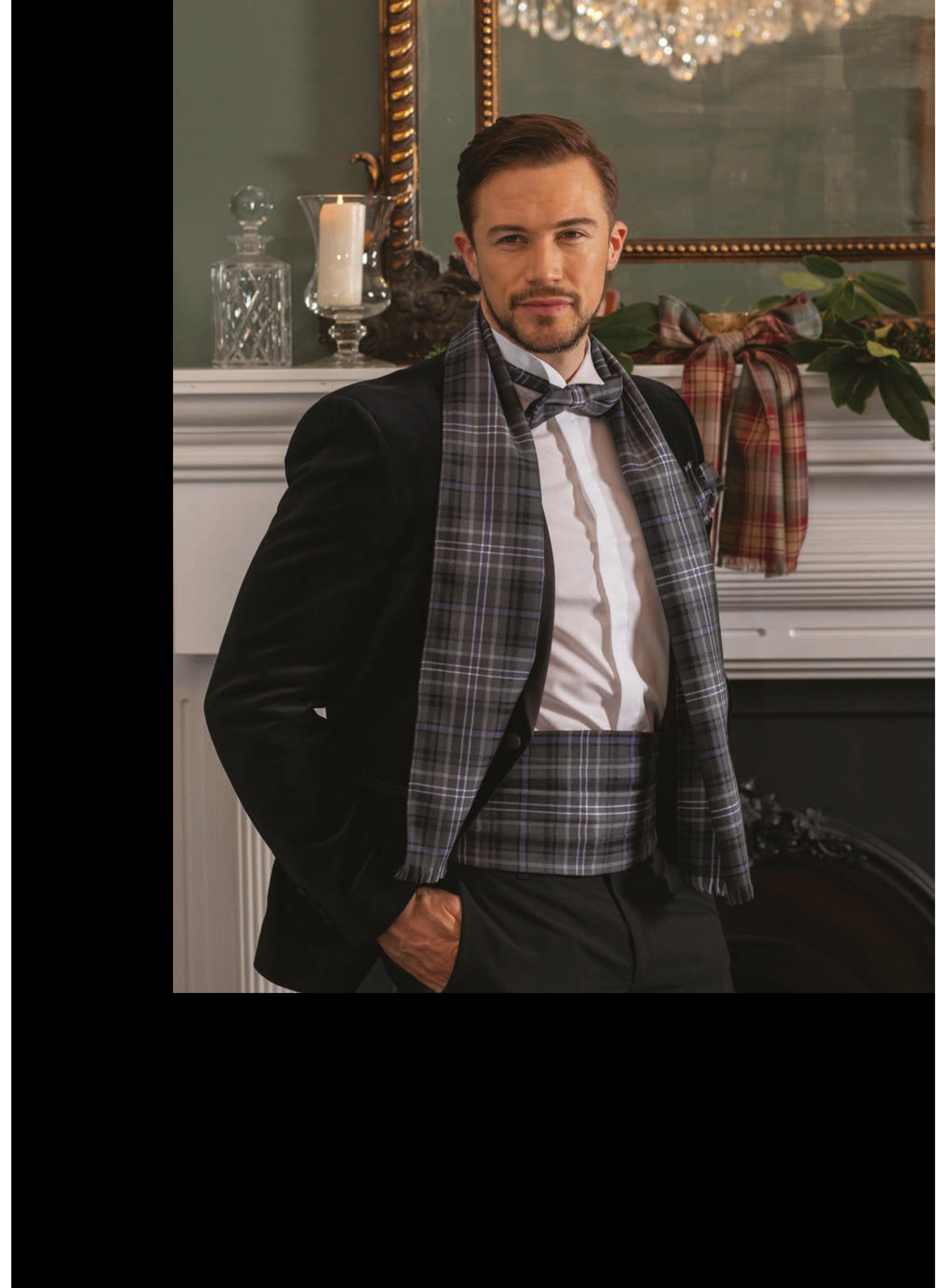 Black Tie events can be made all the more personal by adding a touch of tartan and colour to your outfit. Why not consider going the whole way and design and make your own family or corporate tartan. Our team of skilled designers can help you with this * See page 59 for more details or give us a call