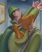 Patrick Amiot's sculptures reflect an acute observation and sense of humour of daily life. His work in ceramic, mixed media and recycled material touches on a wide range of subject matter often stemming from iconic Canadiana. Always comical, his depictions of hockey legends, musicians, fishermen and anthropomorphic animals make up his common characters often set against the backdrop of bustling streets and quirky shop interiors.