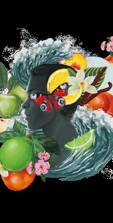 Our bottle label has 11 illustrated elements, each depicting part of our story, drawn by an illustrator from Los Angeles. Elements include: an iguana that symbolises the use of rum from the Dominican Republic, a butterfly influenced by a journey to source rosehip from China and a key that unlocked an infamous Plant Hunter after being captured by pirates on his European trip to source oregano.