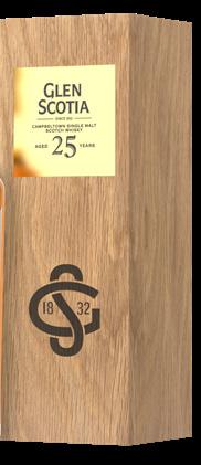 Glen Scotia 25 Year Old has been matured in the finest bourbon casks. Individual casks are carefully selected for their character and flavour, and then further married together in first-fill bourbon casks for a minimum of twelve months. The fresh bourbon finish brings a hint of sweetness whilst raising the intensity of the wood but preserves the distillery character of fruit and hints of sea spray. An exceptional non-chill filtered single malt delivering the true character of a Campbeltown malt whisky.