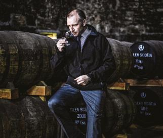JAMES STEWARTDistilling was probably going on in Kintyre for centuries, but the written legal history begins in 1609 with the granting of a licence to produce ‘aqua vitae’ to a John Boyel of Kelburn. With an excellent water supply, easy access to peat and grain, and a growing market in Victorian Britain and beyond, little Campbeltown had 28 distilleries by 1851, and proudly proclaimed itself ‘the whisky capital of the world’. Today only three distilleries remain, of which ours, Glen Scotia, is one of the smallest in Scotland.