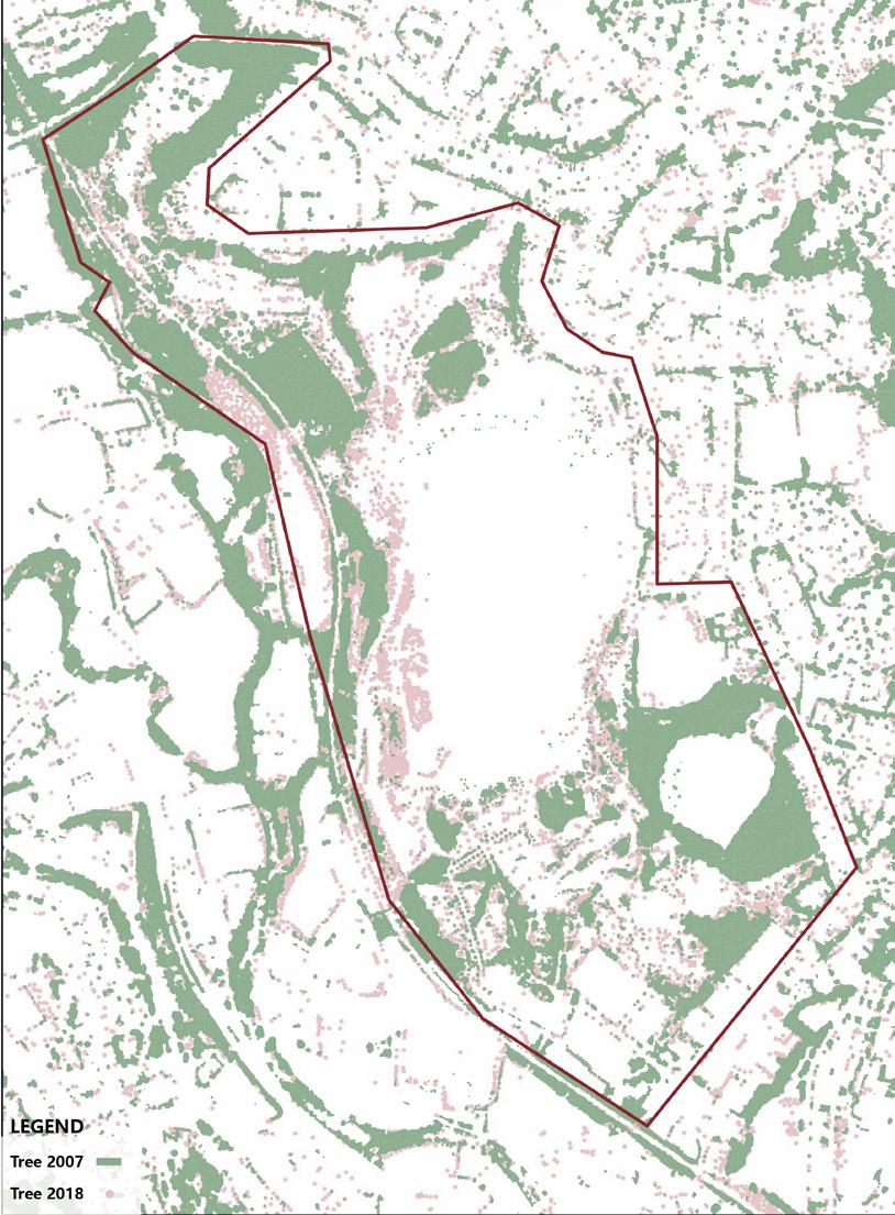 The graph represents: the greenfield development of Parkwood springs in 2027 and the expected changes in its next phase after the design. We can see the increase in the number and strength of green vortices, social vortices.