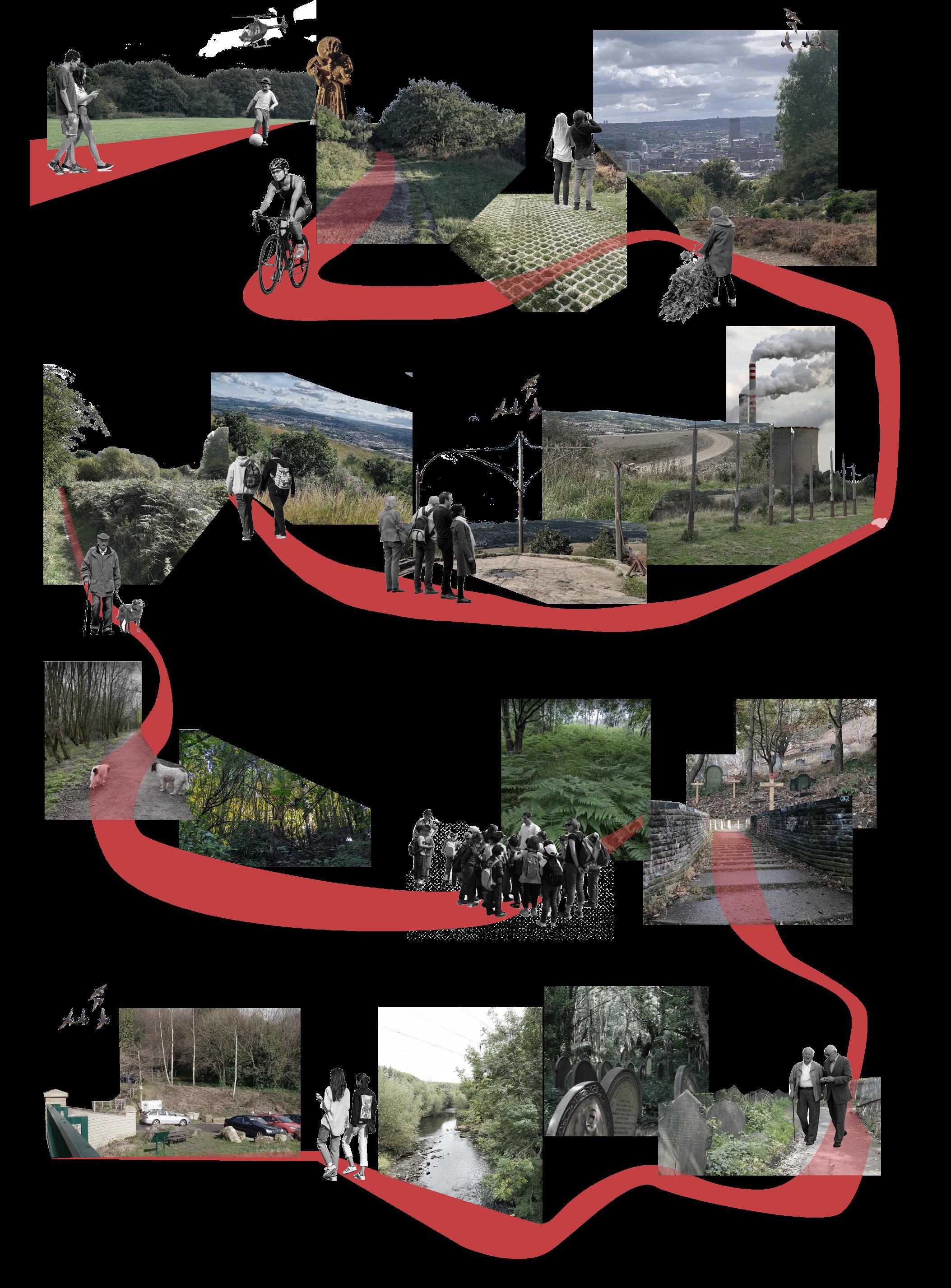 This diagram represents: the expected green space of Parkwood Springs in 2037 and the expected changes in the next phase. We can see that the green vortex and the social vortex are already beginning to merge with the vortex of the surrounding green space. The urban vortex is gaining strength.