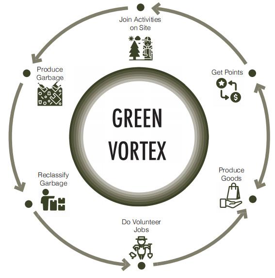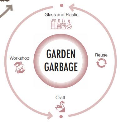 CRAFT UNIQUE Landfill on site Energy supply Energy Energy Generation Workshop Soil and fertilizer Volunteer activites Flower、 fruit and vegetable Activities on site Leftover leaves and branches Craft Workshop Reuse Glass and plastic Join activities on site Get points Produce garbage Reclassify garbage Do volunteer jobs Produce goods