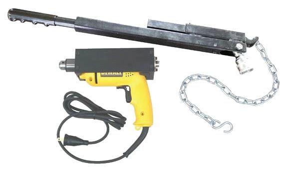 The Equalizer II is designed for comfort when drilling. Simply turn the handle and pull it out to the length that feels best to you. The release pin allows you to make the chain and motor parallel. The new nipple lock locks the lever rig and the drill motor together making this a much safer rig if your drill bit catches while drilling. The drill motor does not turn, the whole rig is locked together and is much safer for the operator. There are many times a lever rig may be the best choice, especially when you have to side or top drill a safe. Comes with a Dewalt 1014 drill motor.