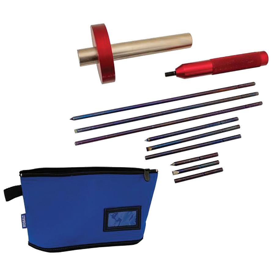 Offers two unique gripping options with a 3-1/2" hand guard. The first handle option offers a lower impact punch and the second option features an attached anodized knurled handle for improved grip. Kit Includes: