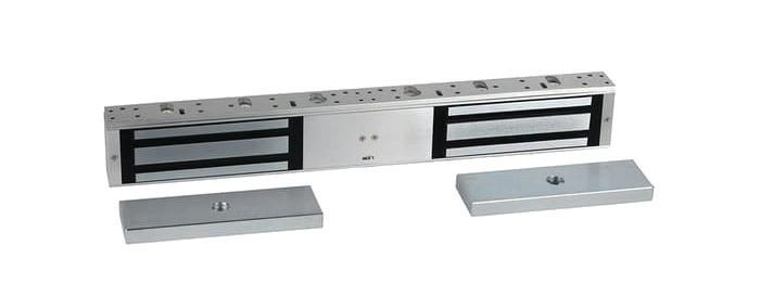 With 1200 pounds of holding force per magnet, the 8310/8320 Series is designed for operation for interior or perimeter doors. The mounting bracket has keyhole mounting to support the magnet, freeing the installer's hands to affix the magnet mounting screws. The removable cavity cover offers quick, easy access to wiring. Use the 8310 for single door applications and the 8320 for double doors. For additional security monitoring these electromagnetic locks offer optional door status (DSS) & security condition (SCS) sensors.