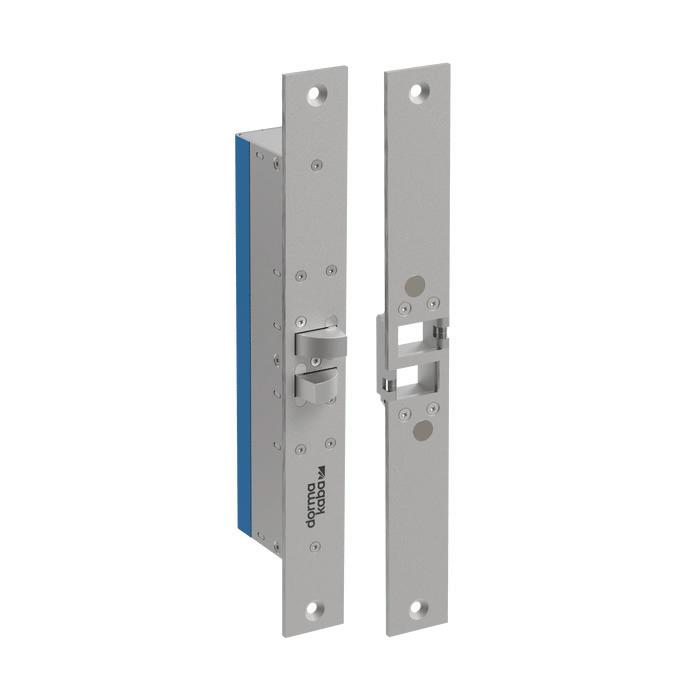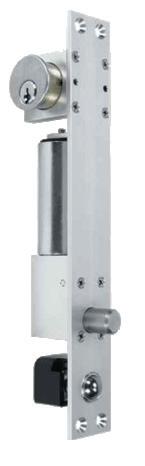 The Spacesaver® concealed bolt projects at a right angle to the lock mechanism, allowing installation in virtually any standard frame. Equipped with stainless steel bolts, the automatic relock ball switches keep the bolt retracted while the door is open. The door depresses the ball switch on closure, causing the bolt to project automatically, locking the door. Cylinder not included.