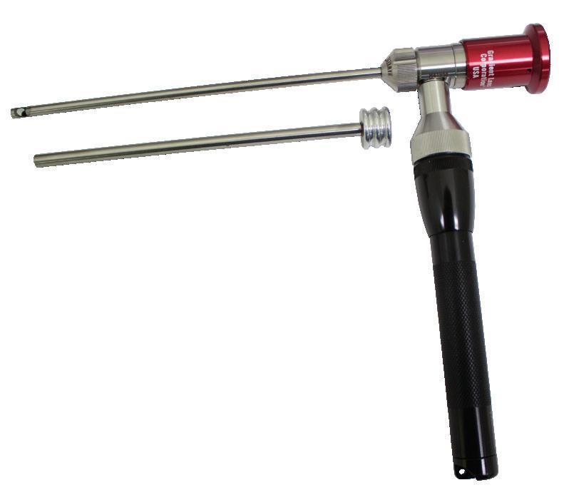 This kit has an adjustable focusing eyepiece to allow for wider range of visual distances. A 42° field-of-view is achieved with the straight view probe. A rotating 90° direction-of-view is achieved by sliding a Slim Mirror Tube onto the scope. 4.80 mm diameter fits easily into a 1/4 in hole