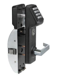 The Simplex provides exterior access by a single access-code combination, while allowing free egress. It is programmed via the keypad without removing the lock from the door. Eliminate the expense of battery replacements.