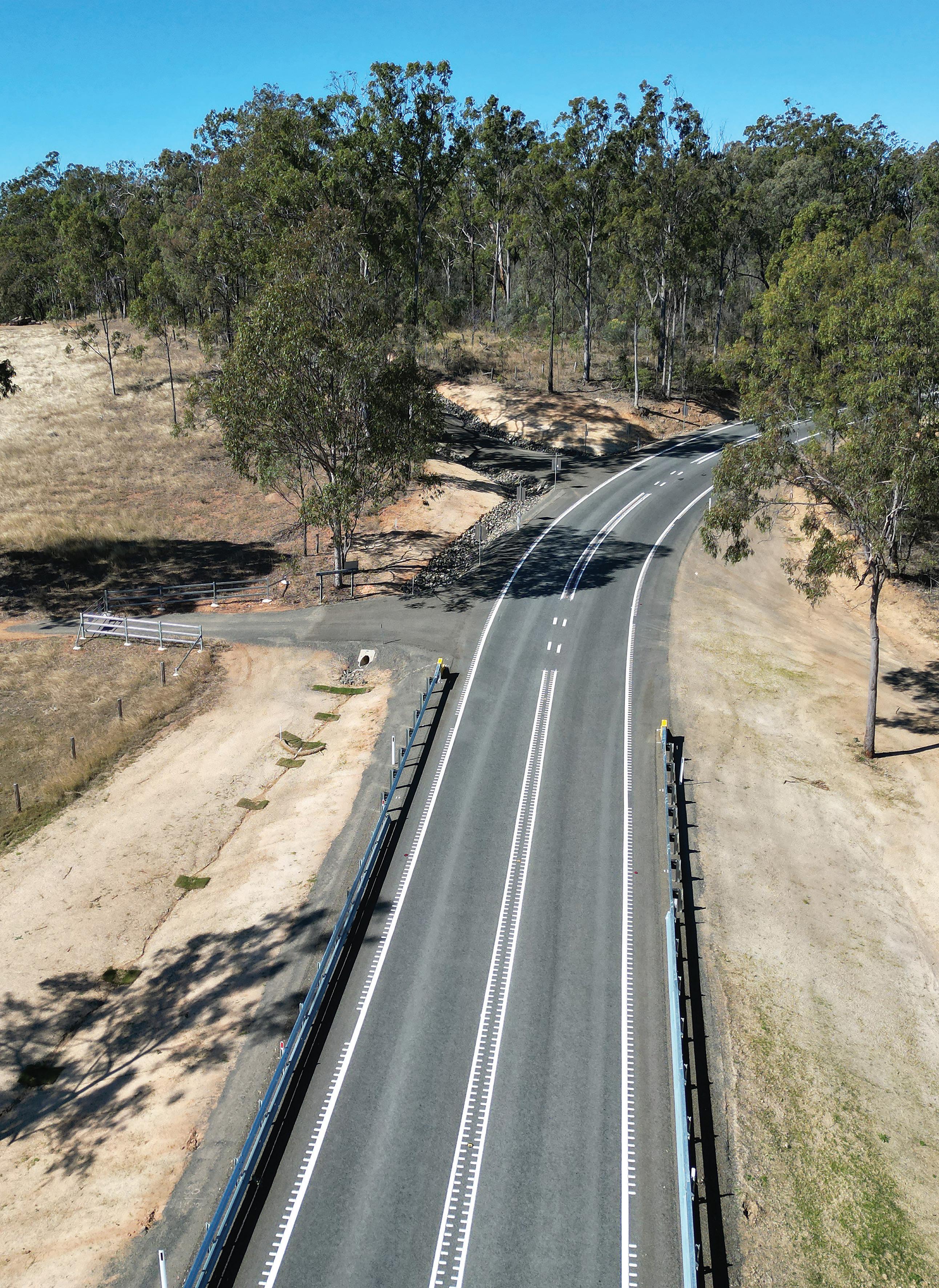 Proudly funded by the Queensland Government through the Transport Infrastructure Development Scheme, this project has seen improvements to sight distances, the intersection layout, pavement condition and road surface drains.
