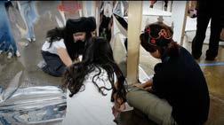 The students worked hard, even staying late during the last week of installation, to execute the three distinct areas of their exhibition. Although the students worked together on the concept of the installation, they broke up into teams to build out their three parts: family, identity, and success.