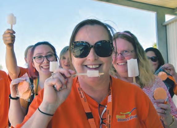Students and teachers gathered with health service CEO Donna Doyle and members of her Strengthening Hospital Response to Family Violence team to create a sea of orange before ribbons were tied to the school fence.