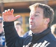 LODDON Valley representative side coach Jade Clymo (right) gives instructions to players at half-time in their interleague clash with Heathcote on Sunday. Marong’s Kane Harris was named the Loddon Valley’s most valuable player in the match.