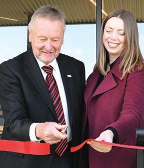 opening with footballers, netballers and hockey players among the large crowd in front of the new hub to see Cr Holt and Ms Haylett cut the ribbon.