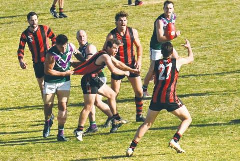 played opponents all day and had the upper hand over Maiden Gully’s Angus Monfries. A spectacular mark in the fourth quarter had Mellington using the former Essendon and Port Adelaide player as a springboard to mark and add to his goal tally.