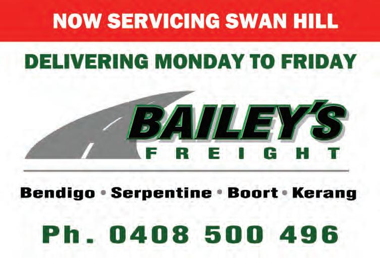 BAILEY Freight owners, Brendan and Leah Bailey of Bridgewater, have expanded their business to include a daily service to Swan Hill. Bailey Freight operates out of a Bendigo depot and services Serpentine, Jarklin, Boort and Kerang. Brendan delivers the Loddon Herald to those towns every week.
