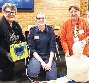 WEDDERBURN paramedic Kimberley van Bergen Henegouw was guest speaker at last week’s Kooyoora Women’s Network dinner at the Bridgewater Hotel. Kimberley (centre) is pictured with Judy Wilson and Kaye Graham demonstrating how to use a defibrillator and the call, push, shock method to more than 30 women who attended the dinner.