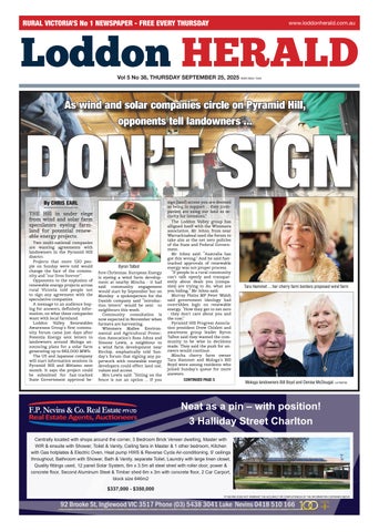 Loddon HERALD No 1 IN REGIONAL VICTORIA FOR LOCAL NEWS - FREE EVERY THURSDAY www.loddonherald.com.au Vol 3 No 28, THURSDAY, JULY 27, 2023 ISSN 2653-1550