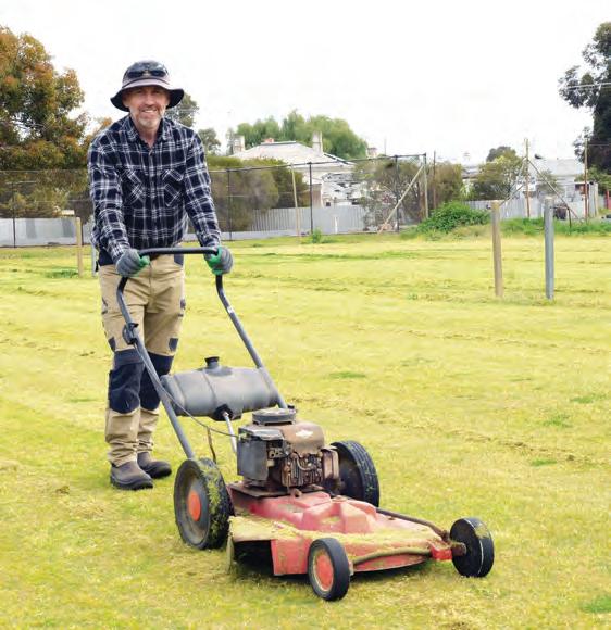 Tim Johns prepares the courts at Inglewood on Sunday during a club working bee ahead of the new