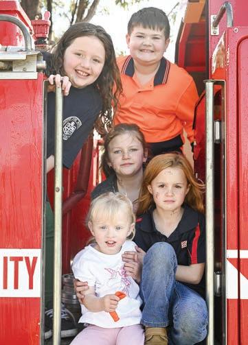Among those enoying the day was Kai Cook (below) who took the wheel of her very own fire engine while local youngsters (right) checked out the Korong Vale tanker.