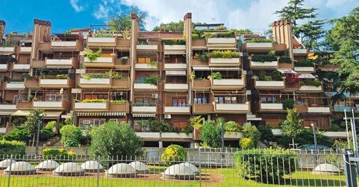 Se guardiamo la costruzione dall’esterno, non vediamo i vetri delle finestre o le pareti esterne degli appartamenti, ma principalmente rami, foglie e fiori come in un bosco. Nelle varie stagioni la vegetazione cambia forma e colore e crea effetti di colore molto belli.