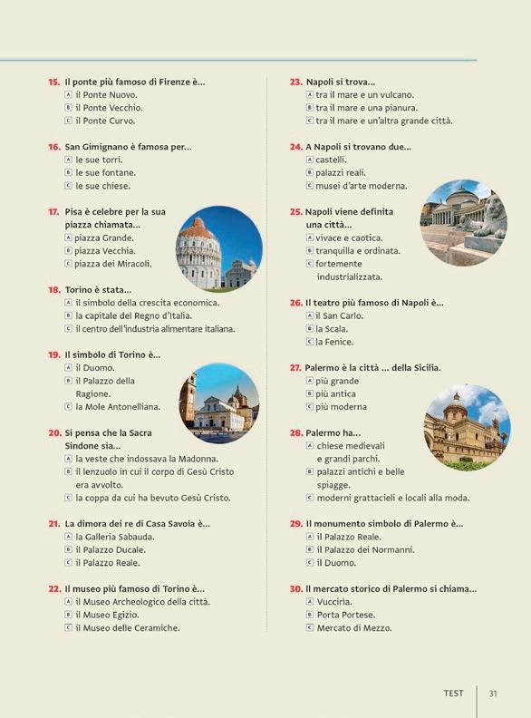 anregen. Außerdem werden im Abschnitt „Scopri l’Italia“ verschiedene mit der italienischen Kultur verbundene Themen in Angriff genommen und kurze „Führungen“ durch Italien angeboten.